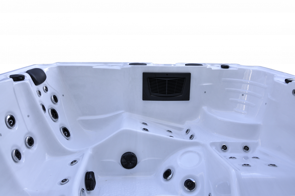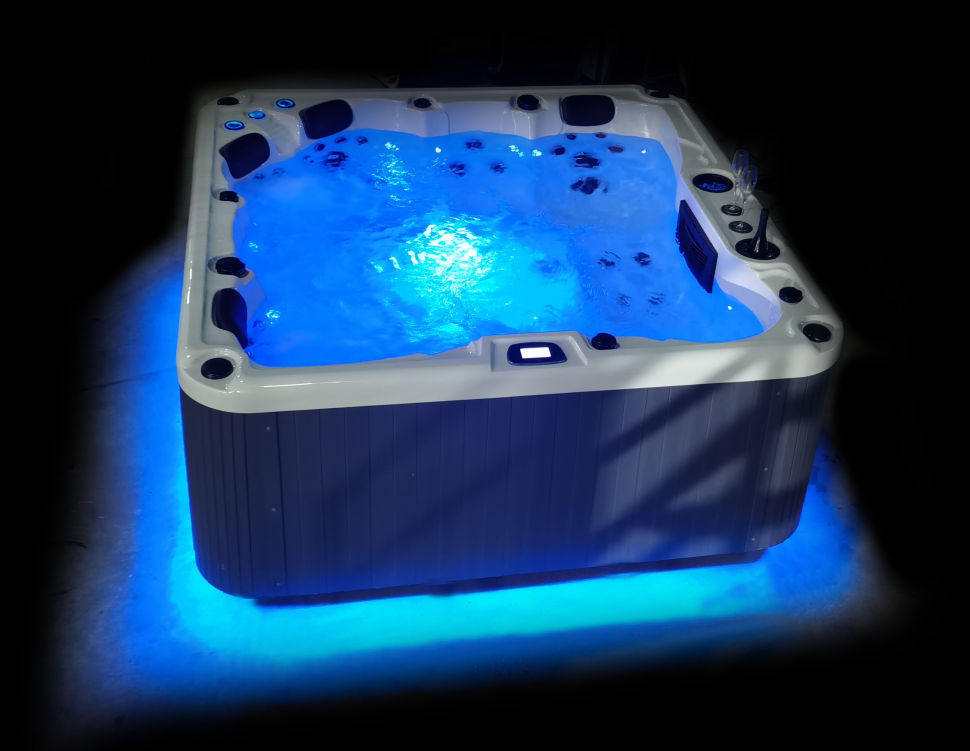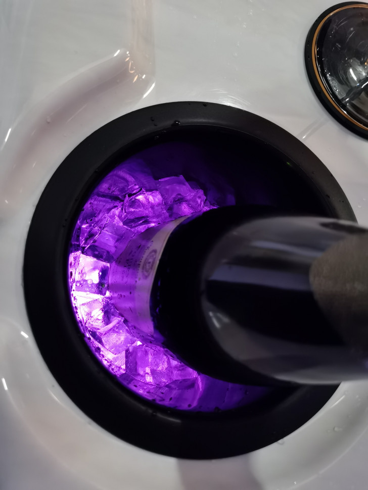 - Освещение: подводный светильник LED, светодиодная подсветка по периметру чаши, два фонтанчика с LED подсветкой, а также два встроенных ведерка для льда с LED подсветкой